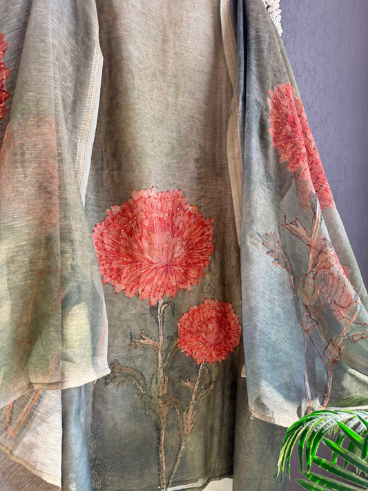 Pure linen marigold kantha work suit
