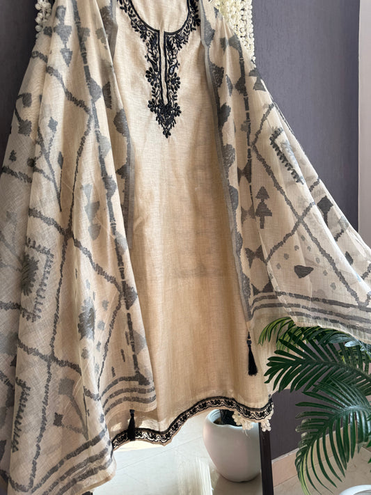 Linen jamdani handwork suit