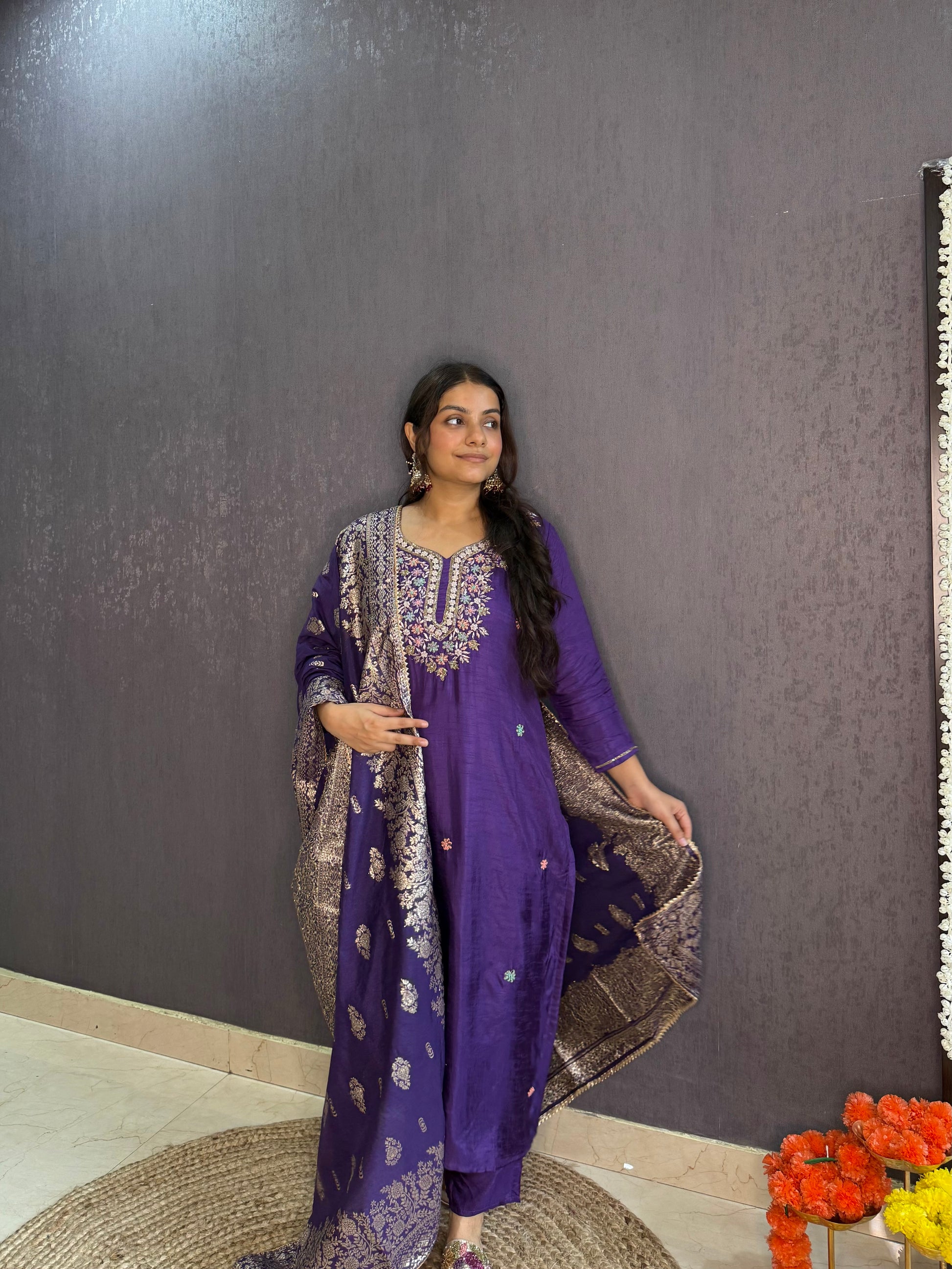 Fabric: Dola silk kurta,bottoms with Benarsi dupatta