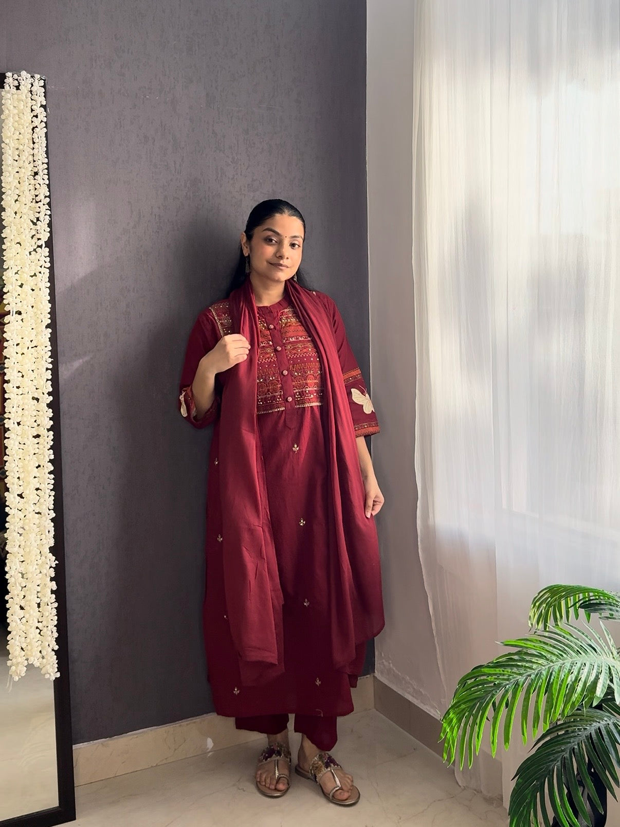 Fabric: Cotton kurta,cotton bottoms with cotton dupatta