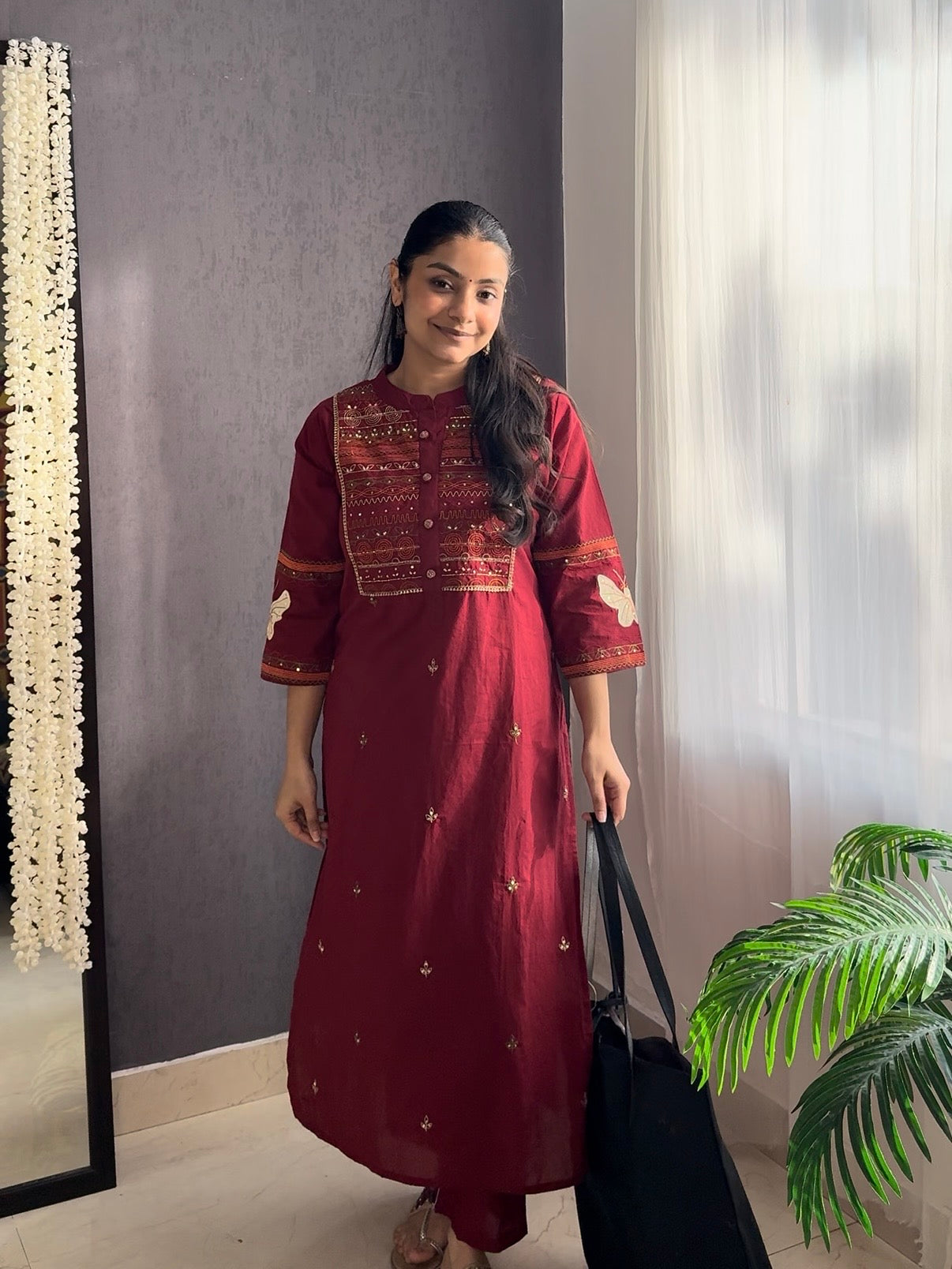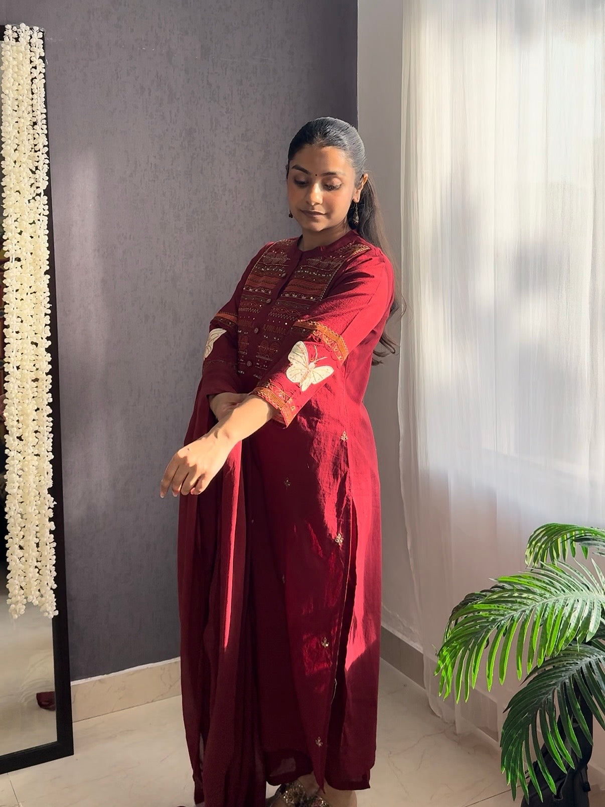 • Handwork detailing on kurtas with appliqué butterflies on arms