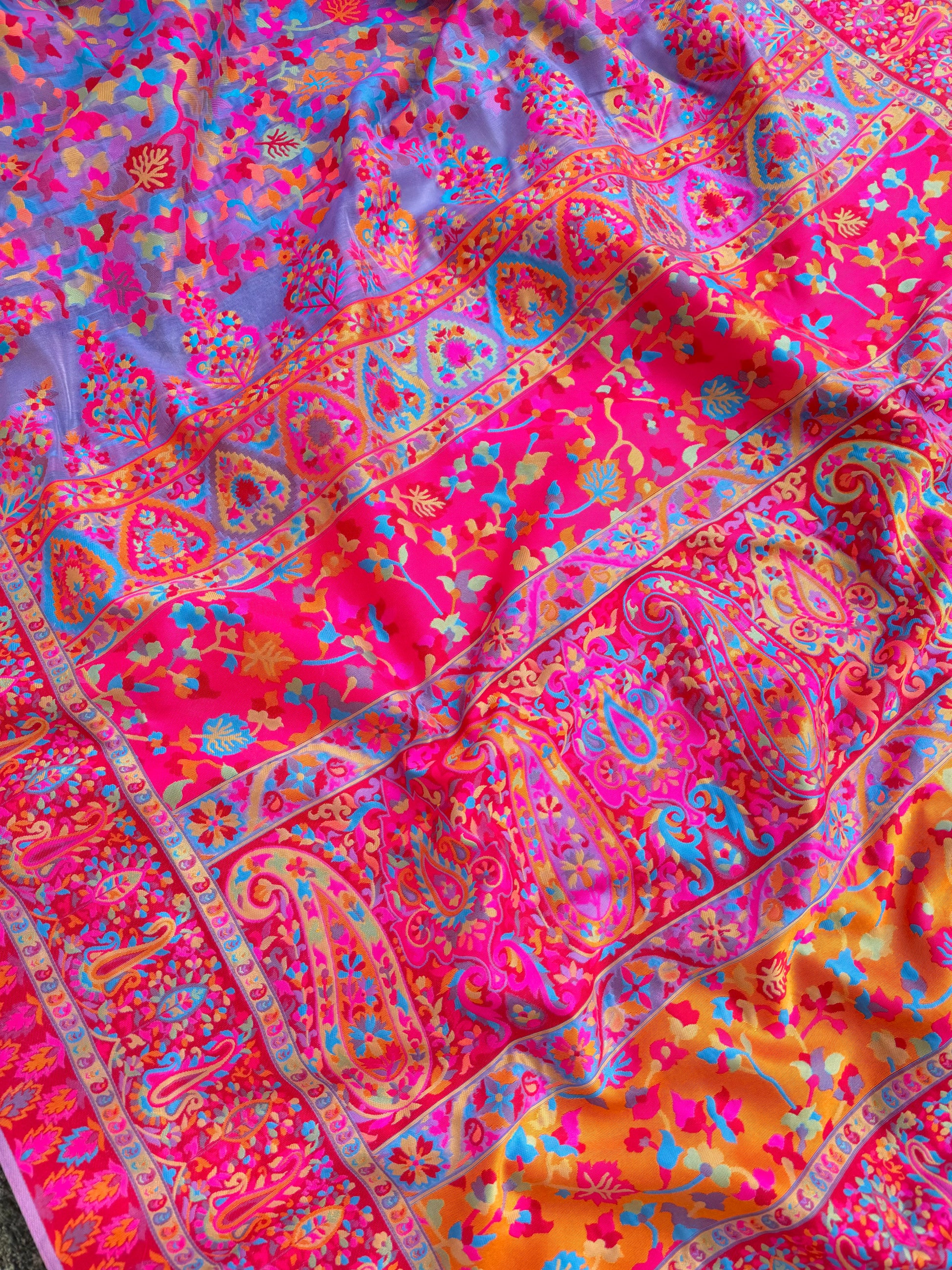 Saree- Soft lightweight linen modal in vibrant colors, in Kashmiri jamawar weave and heavy pallu.