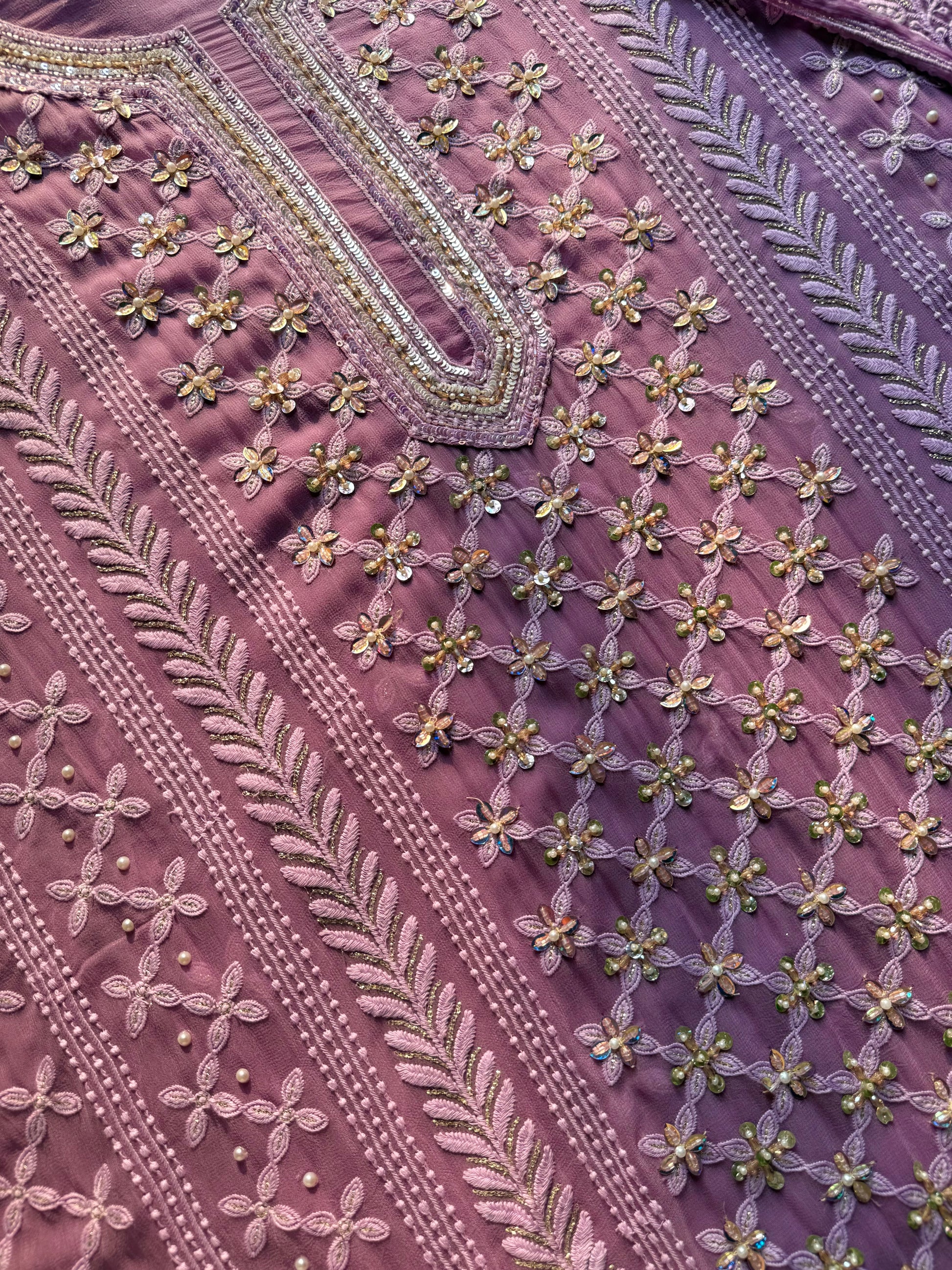 Three -piece pure georgette chikankari unstitched suit.