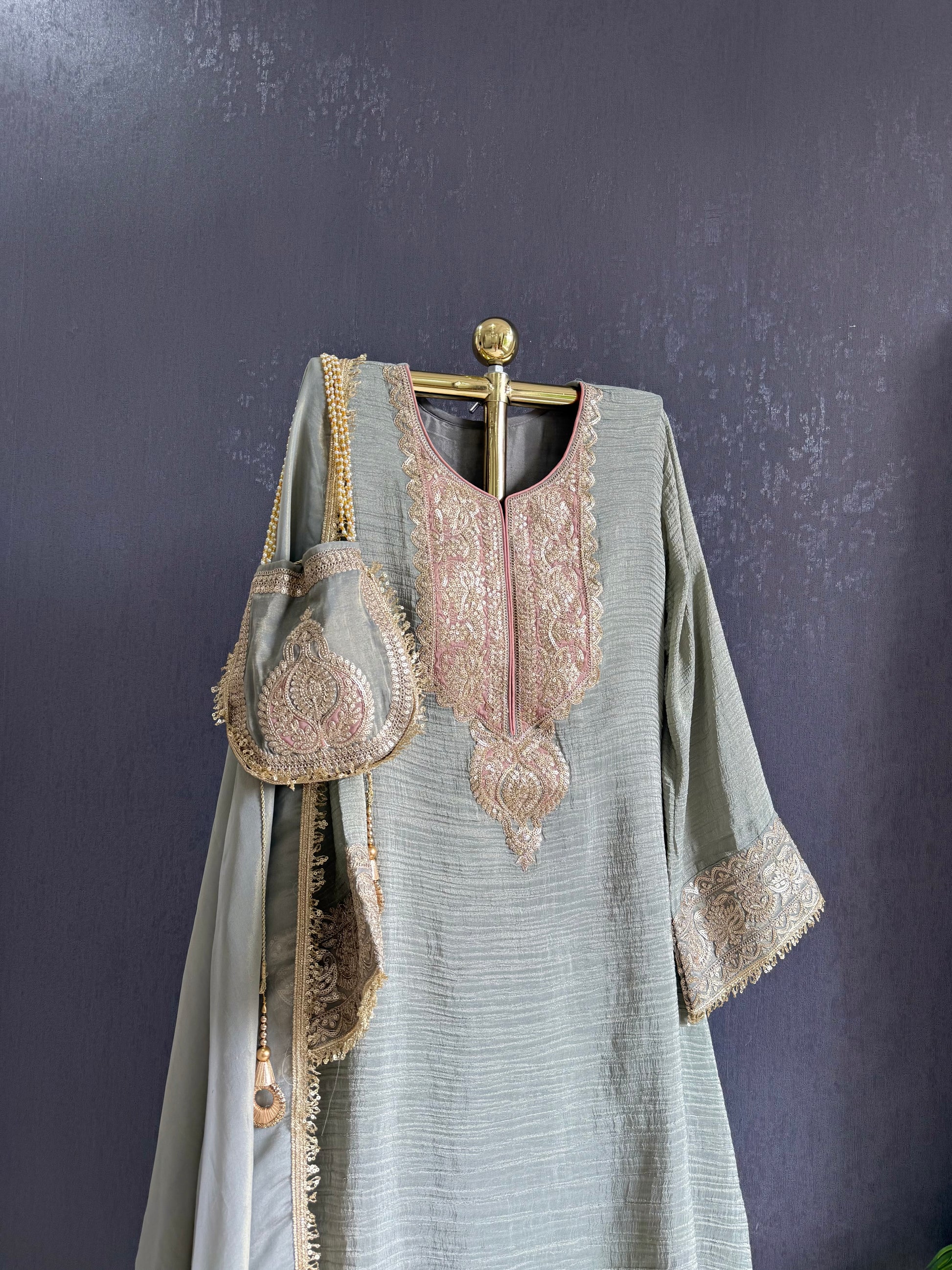 What's in the Box:  Kurta and Dupattas with bottoms and potli bag
