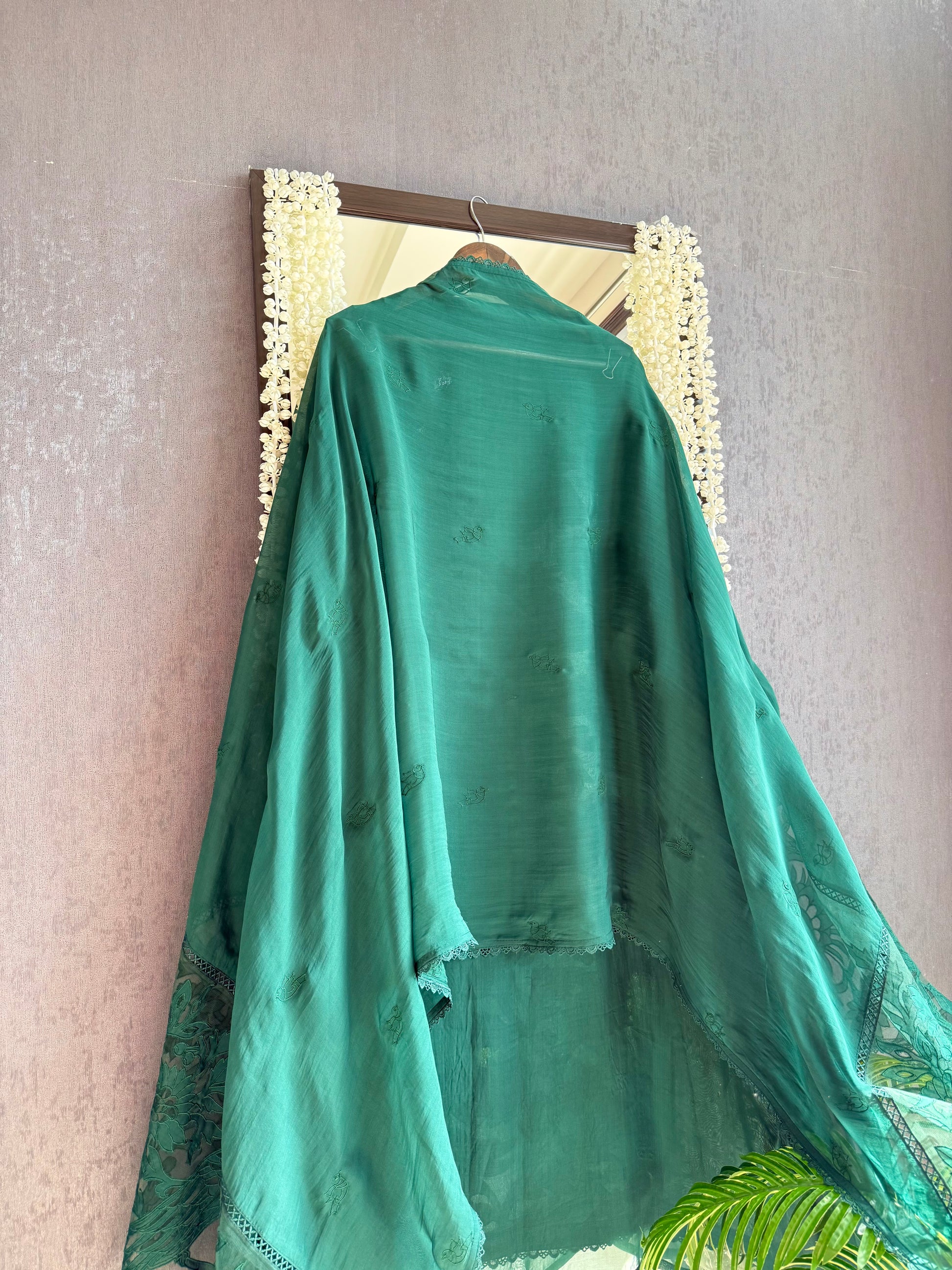 Luxurious organza appliqué work birds suit