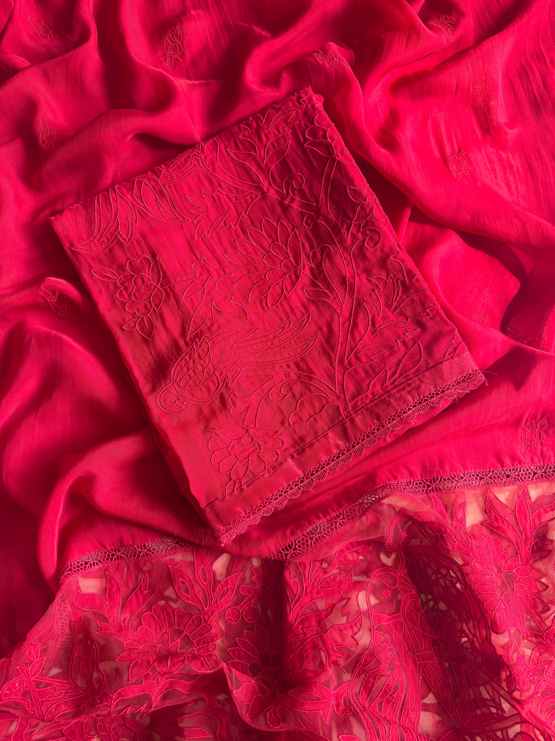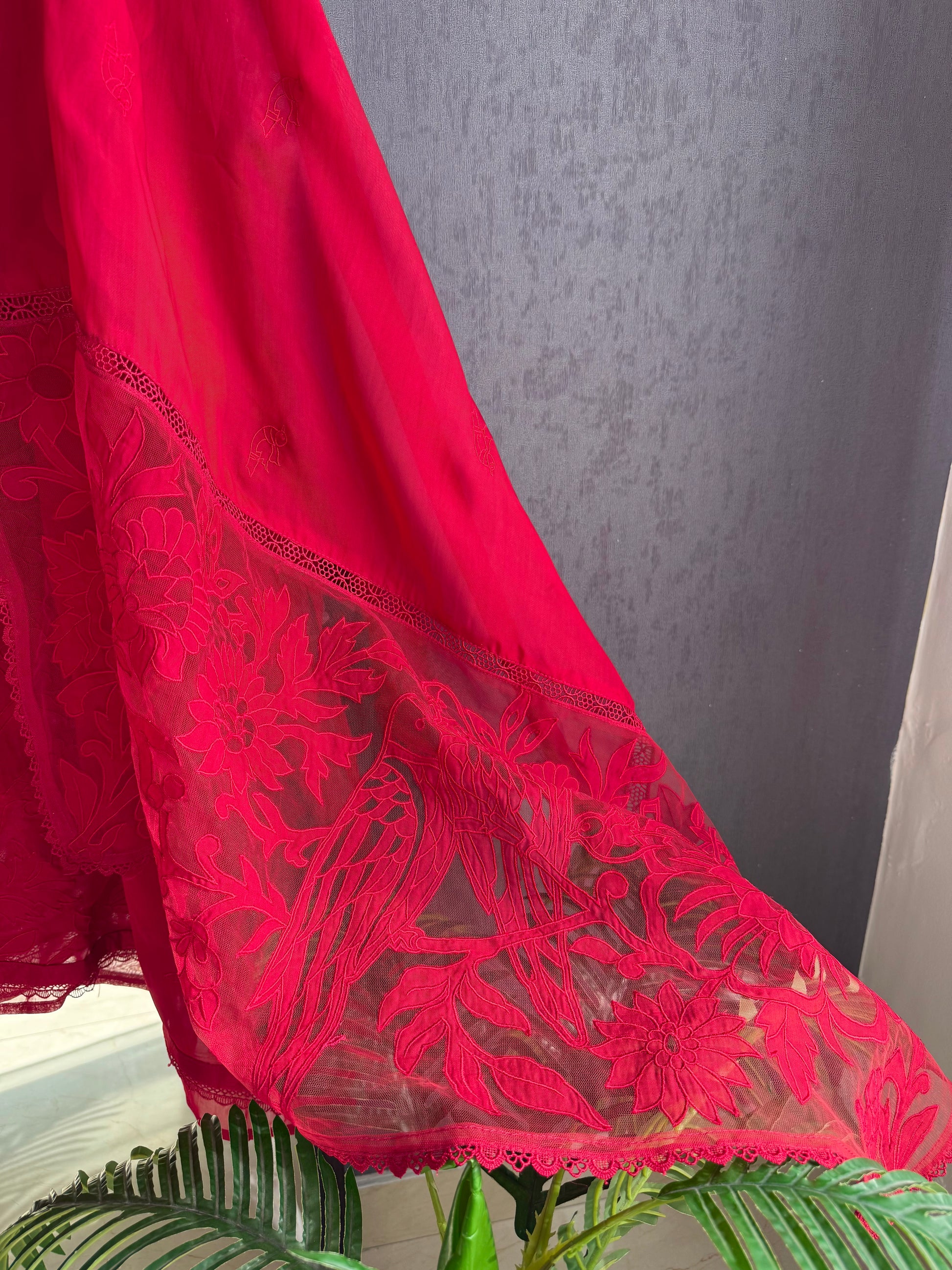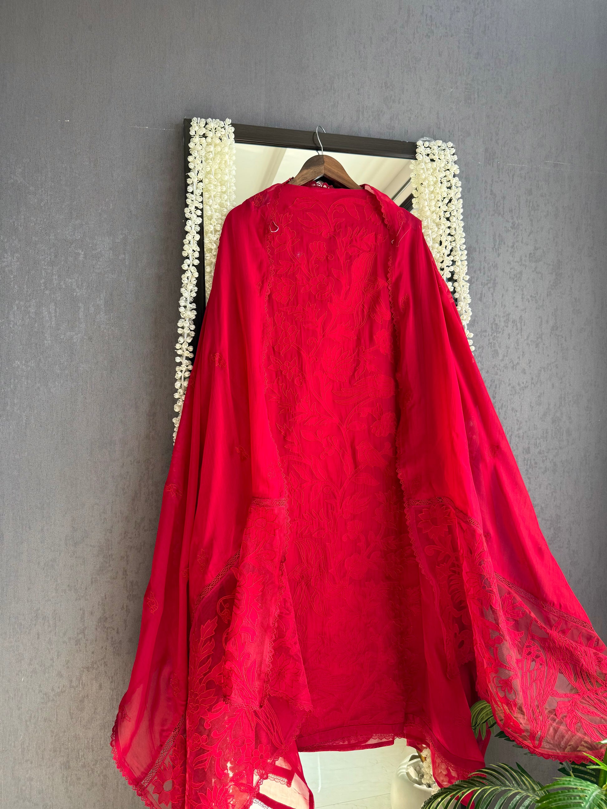 Luxurious organza appliqué work birds suit