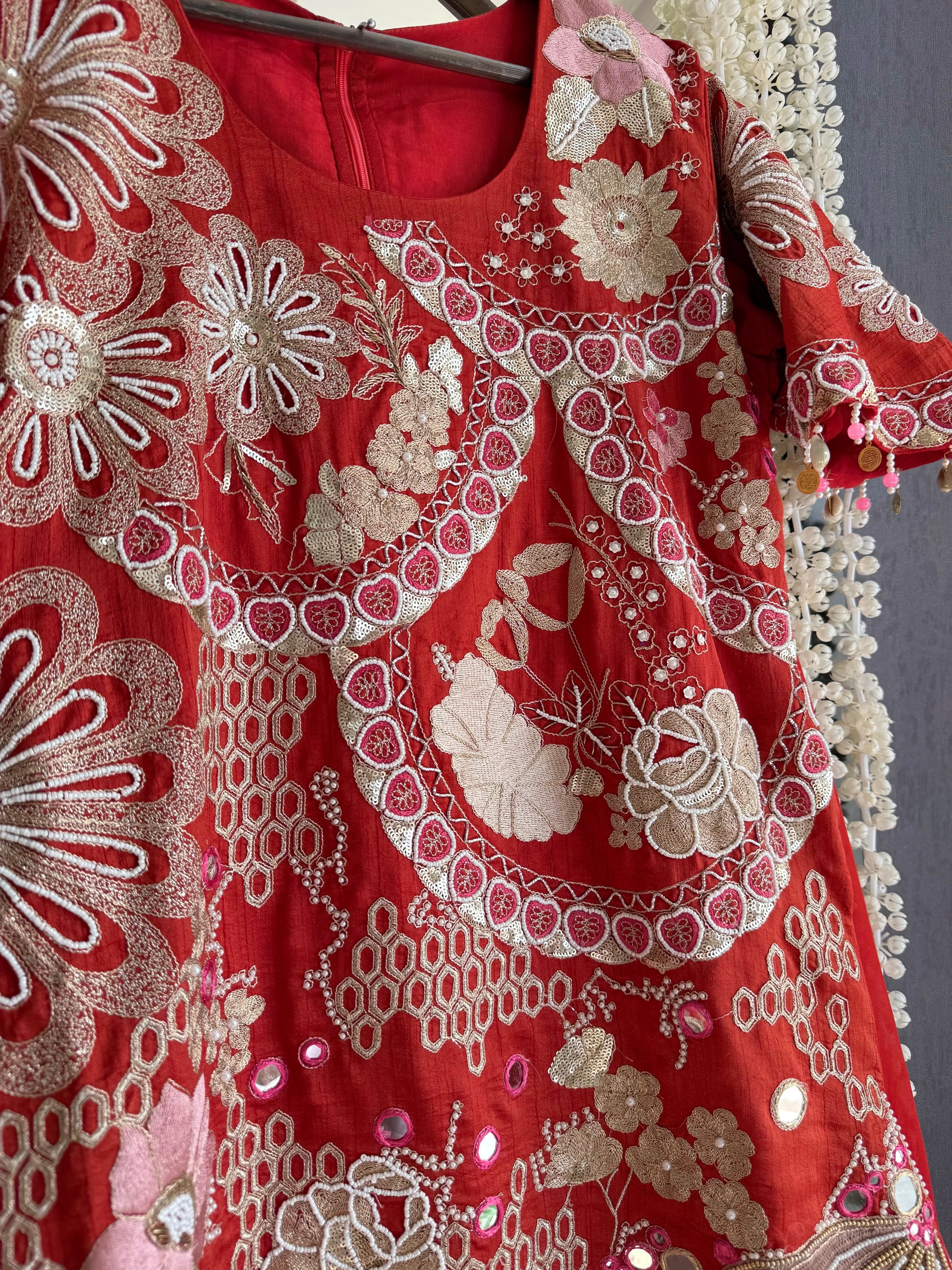 • Heavy zark work detailing all embellished with hand work, beautiful hearts patterns- floral cutworks.