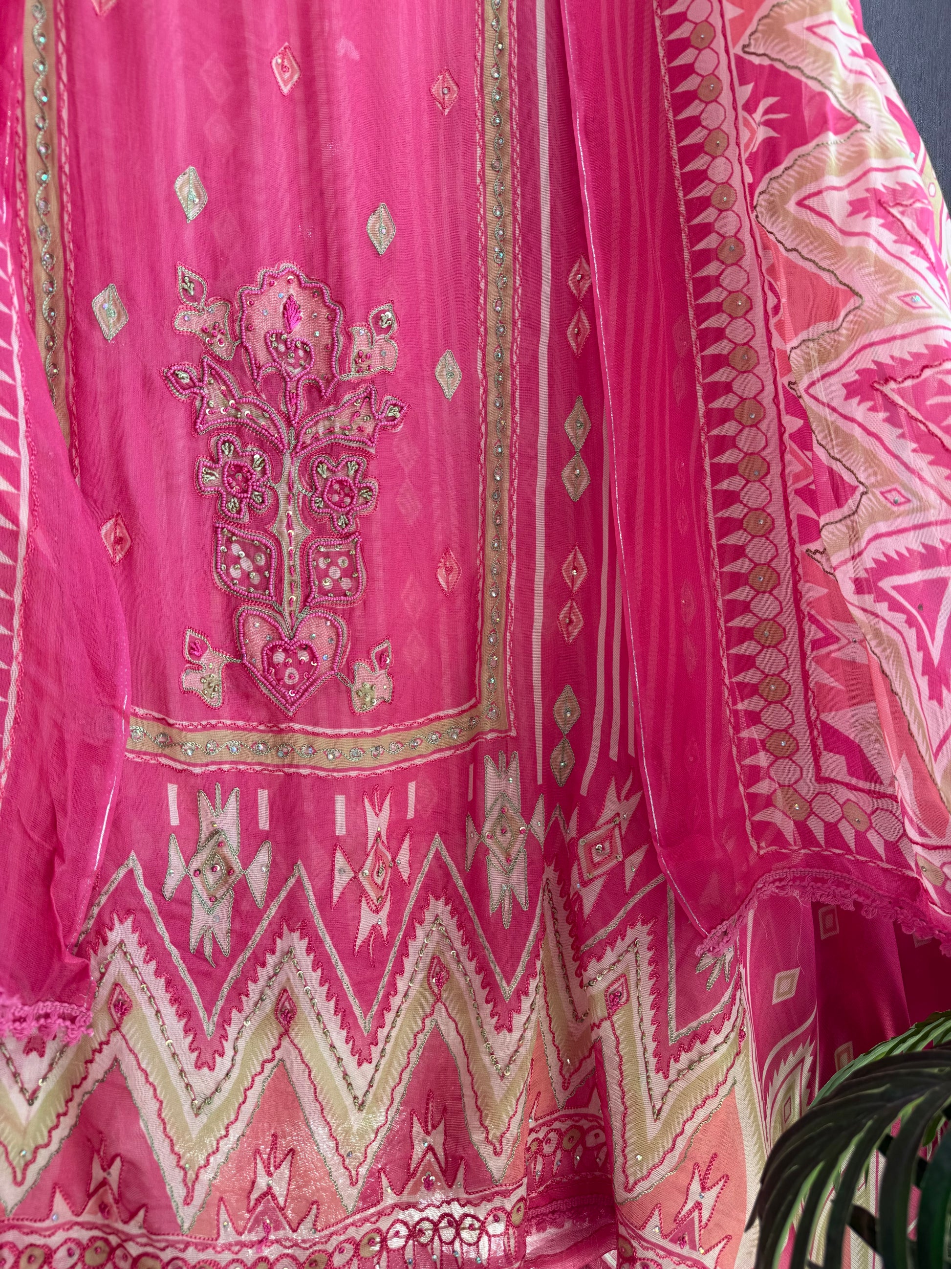 Premium Burberry silk ikkat handwork suit