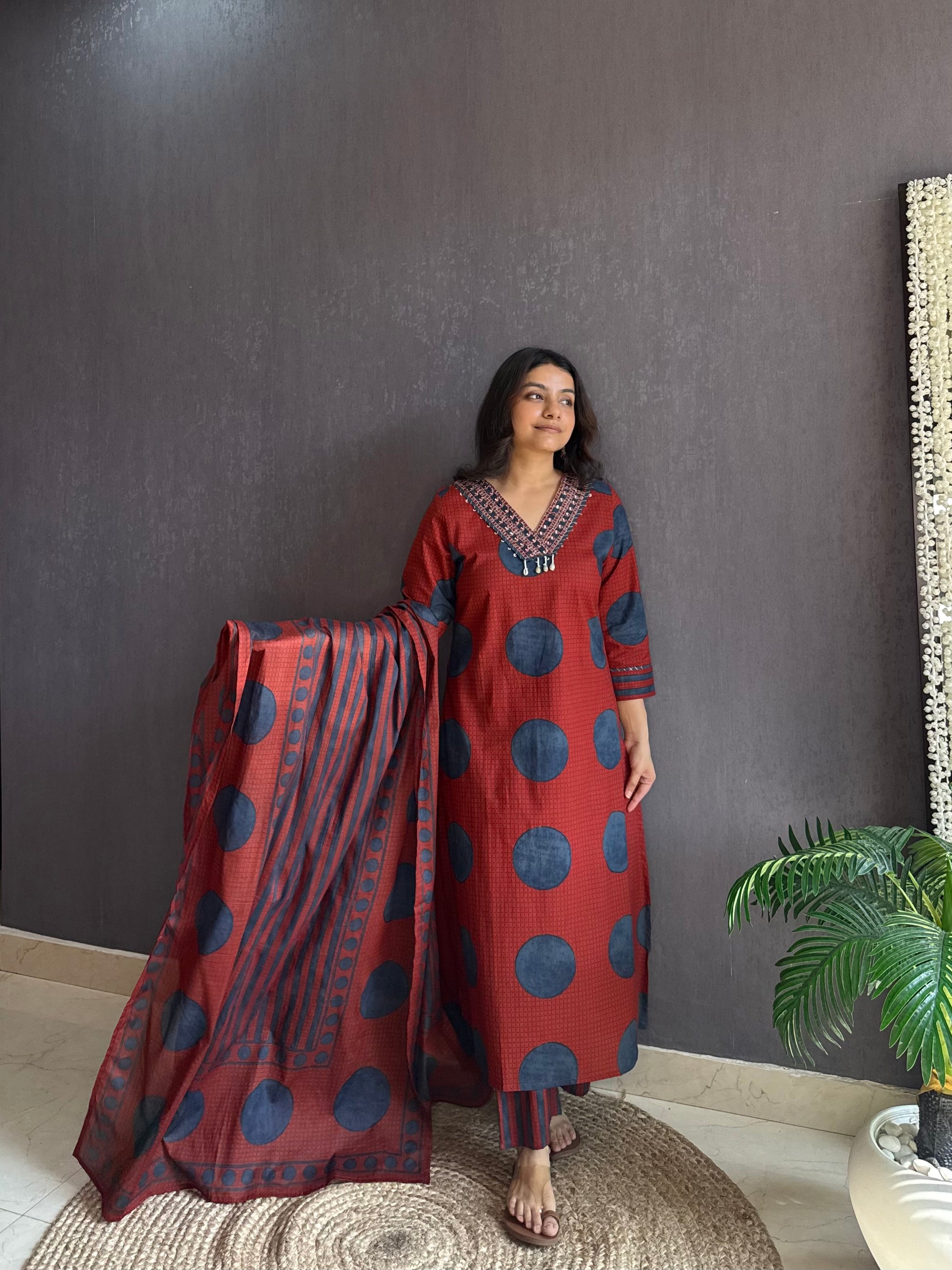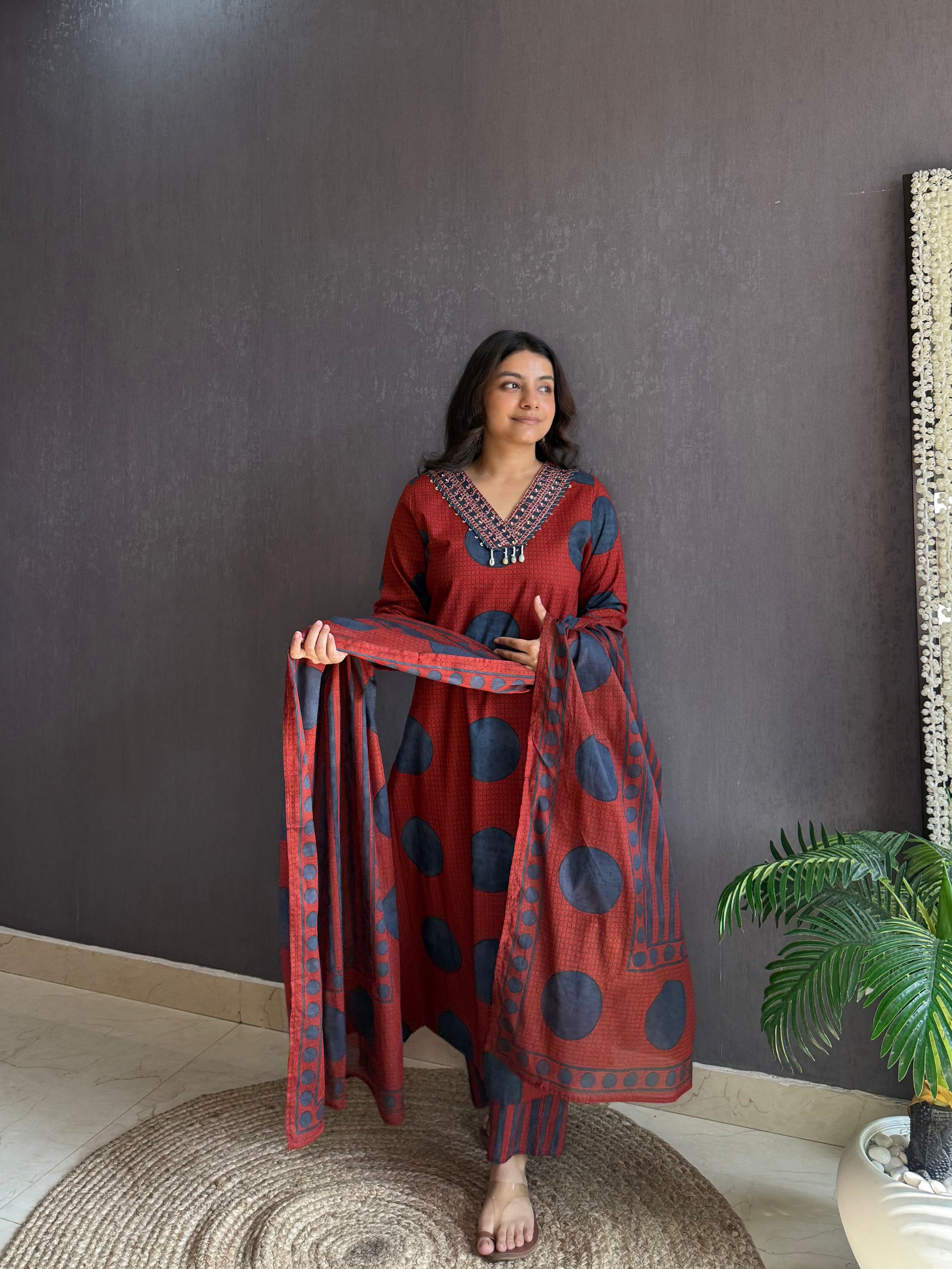 Fabric: Pure cotton kurta and bottoms with dupatta